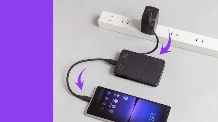 なによりケーブル内蔵なので、持ち運ぶ時にかさ張らなくて嬉しいです。そしてパススルー充電に対応しているので、普段は「コンセント」→「SMARTCOBY Pro SLIM CABLE」→「デバイス」と繋いでおけば、持ち出す際にバッテリー不足で困ることはありません。