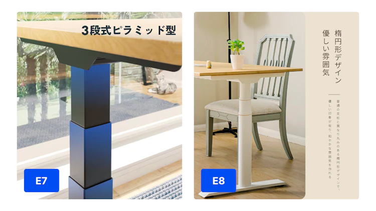 FlexiSpotの昇降デスクの代表モデルである「E7」と「E8」。