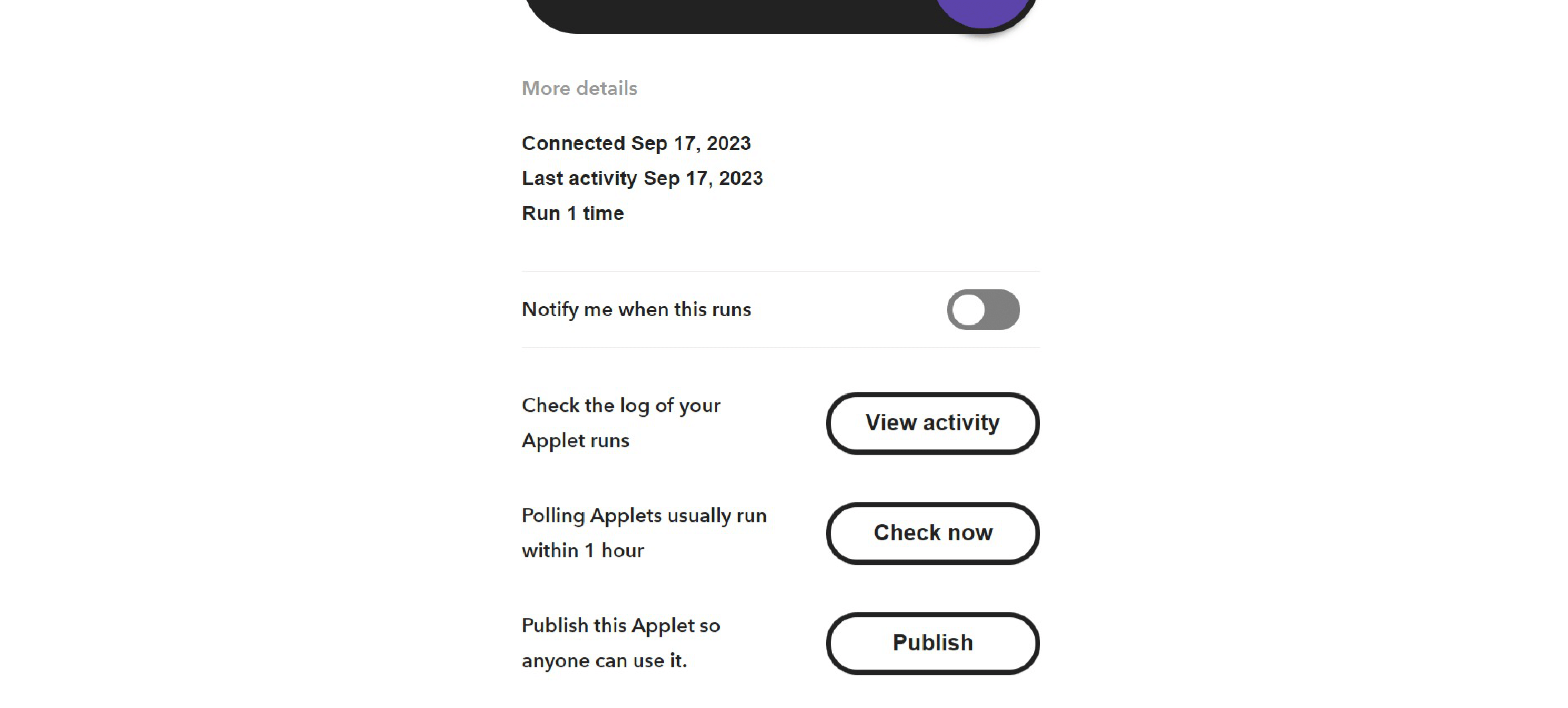 Slackへの通知タイミングは1時間ごとに行われます。ただし、場合によってはすぐ把握したいときもあるかもしれません。その際には該当するApplet内にある「Check now」ボタンをクリックしてください。その時点での回答内容をSlackへ通知させることが可能です。