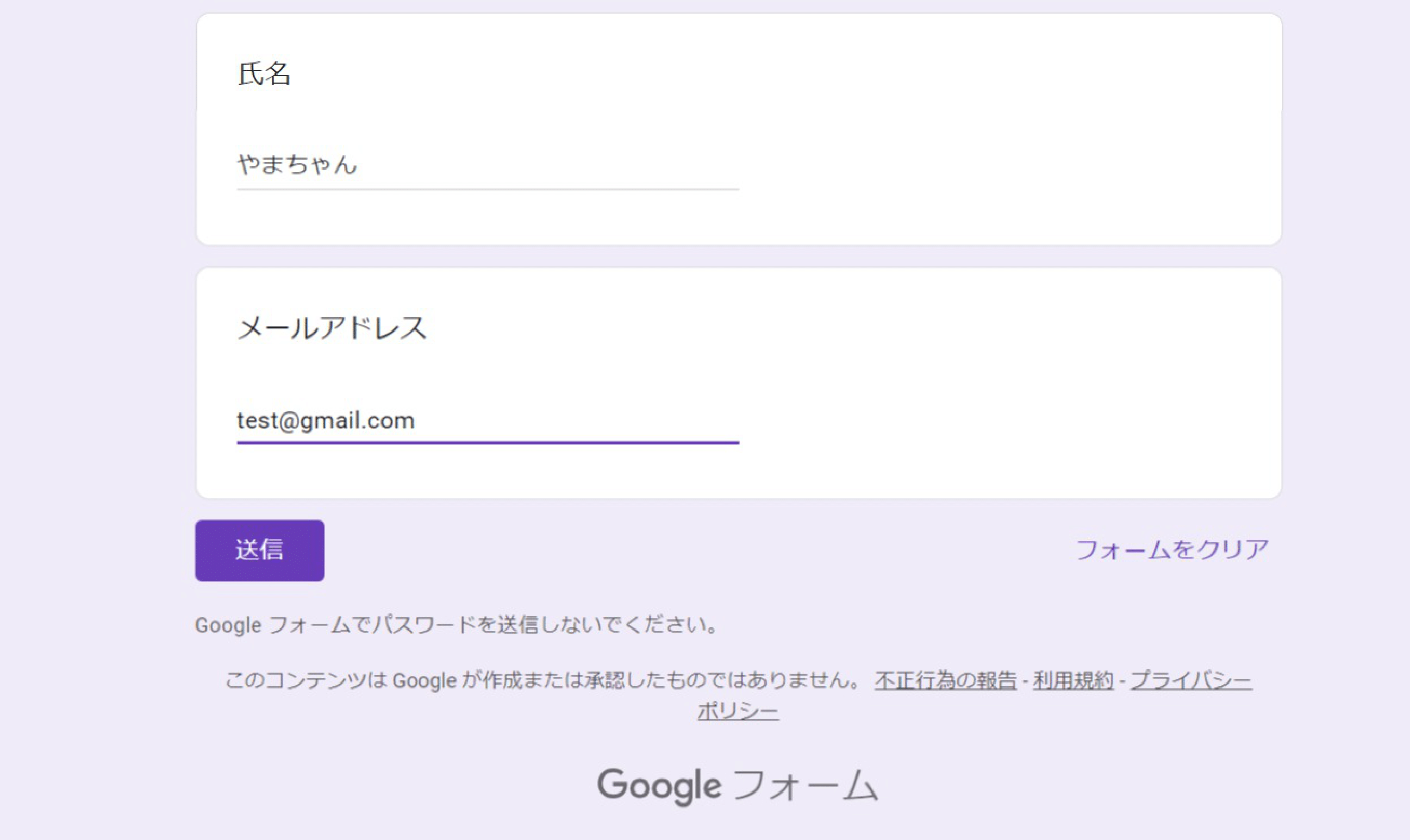 これでAppletとして登録され、準備完了です。実際にGoogleフォームで回答をしてみます。
