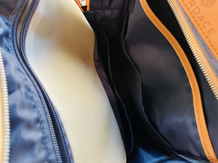ショルダーストラップの裏はやわらかいクッションがついています。人間工学に基づいた設計なので、肩の負担はほぼありません。もちろん、長さ調節可能です。