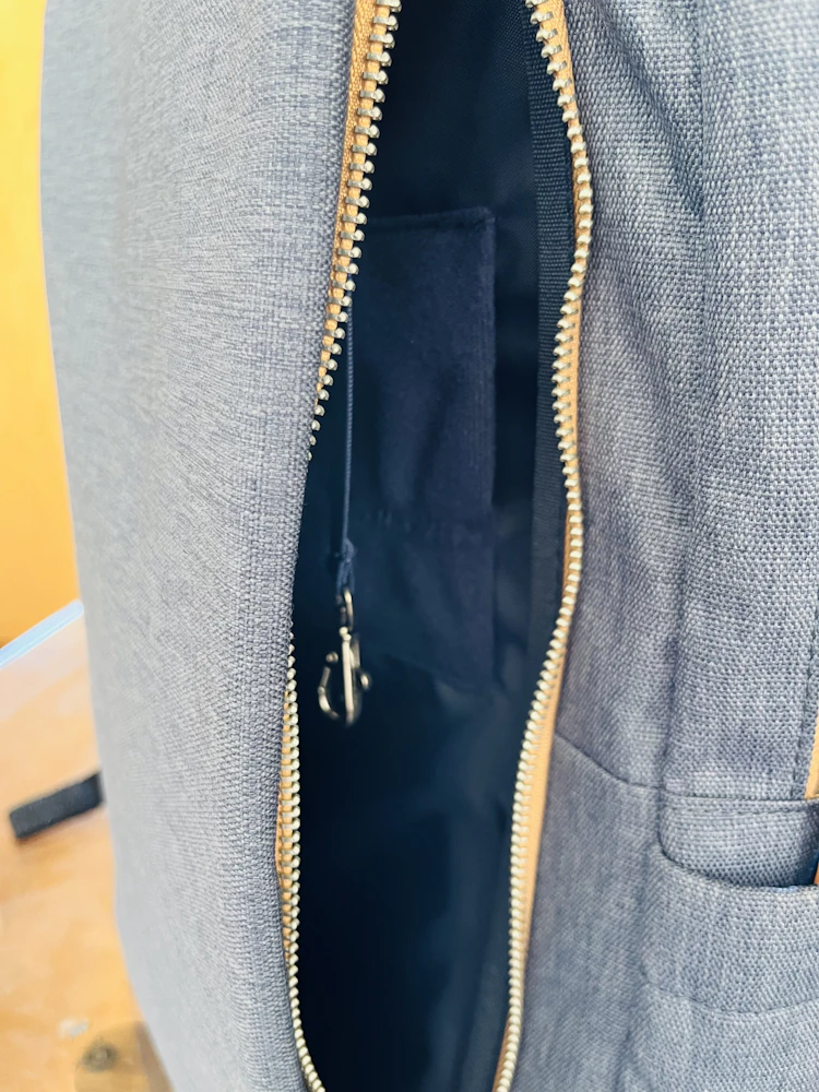 ちなみにストラップの裏には隠しポケットがついています。旅行の際は、こちらにパスポートのような貴重品を入れて持ち運ぶことができます。