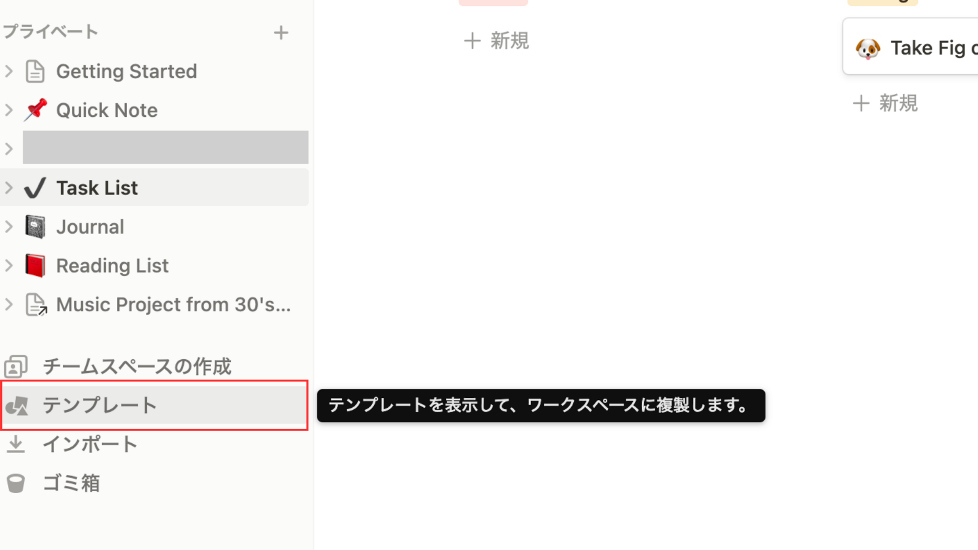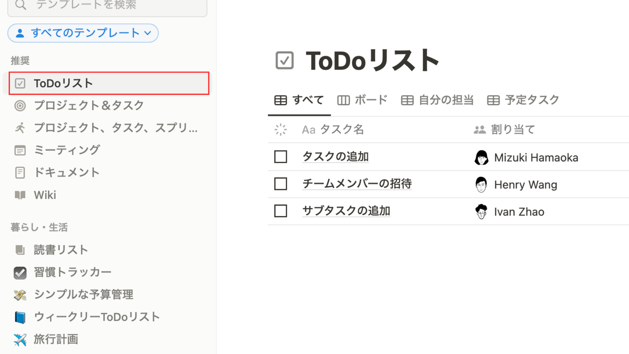 まずは、ベースとなるタスク管理テーブルを作成して、作成したテーブルをガントチャート形式に変換する方法を紹介します。画面左の「テンプレート」より「ToDoリスト」を選択して、テーブルを作成してみましょう。