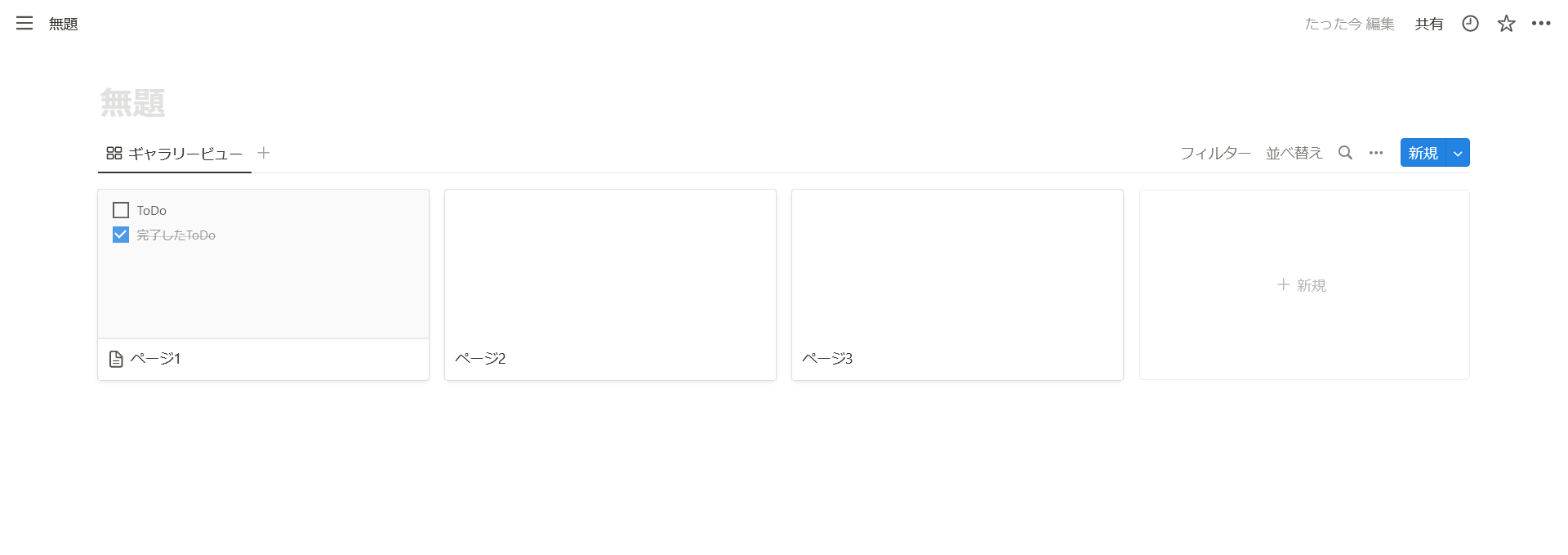 ギャラリー機能では、以下の通りデフォルトでページが3つ用意されています。