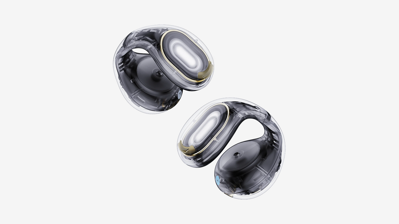 楕円形12 × 17 mm“レーストラック”ドライバーは、円形9〜13 mmより約30 %大型。チタンコートで剛性を確保しつつ40 Hzまで低域が伸び、中域もクリアです。声は耳元に近く、EDMでもベースが埋もれません。開放型ならではの広い音場に高音の煌めきも加わり、骨伝導にはないリッチさを楽しめます。