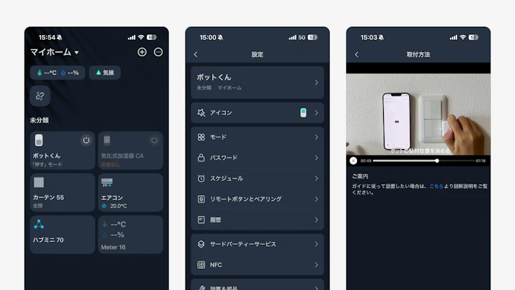 セットアップは非常に簡単で、SwitchBot専用アプリをインストールし、Bluetoothでデバイスを検出して登録するだけ。わずか数分で準備が完了し、誰でも迷わず使い始められます。
